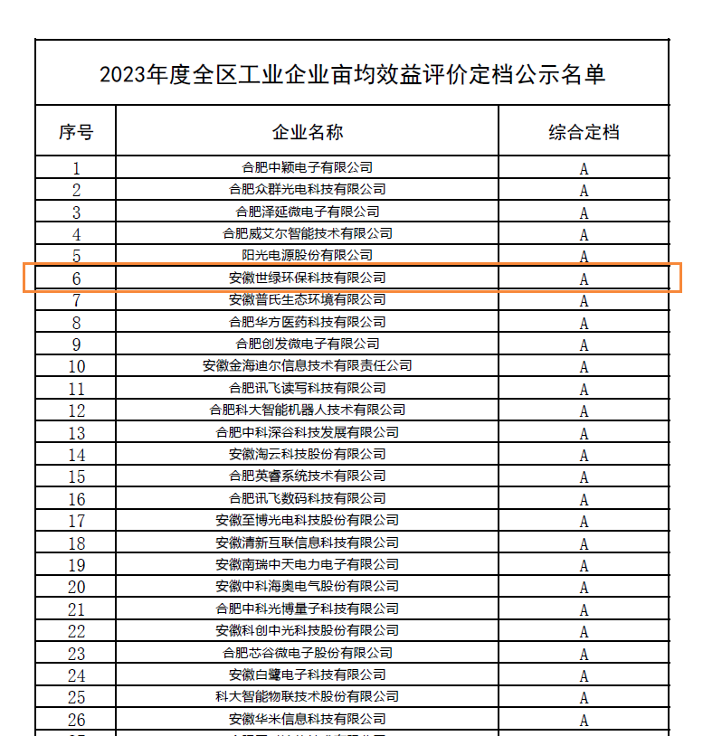 根據《合肥高新區工業企業畝均效益評價辦法(3.0版)》(合高畝均辦〔2024〕2號)文件規定,高新區畝均辦對全區434家參評工業企業2023年度畝均效益情況進行了綜合評價,共評出A類企業159家,B類企業134家,C類企業115家,D類企業26家。經區畝均效益評價工作領導小組成員單位聯審通過,近期對評價結果予以了公示。