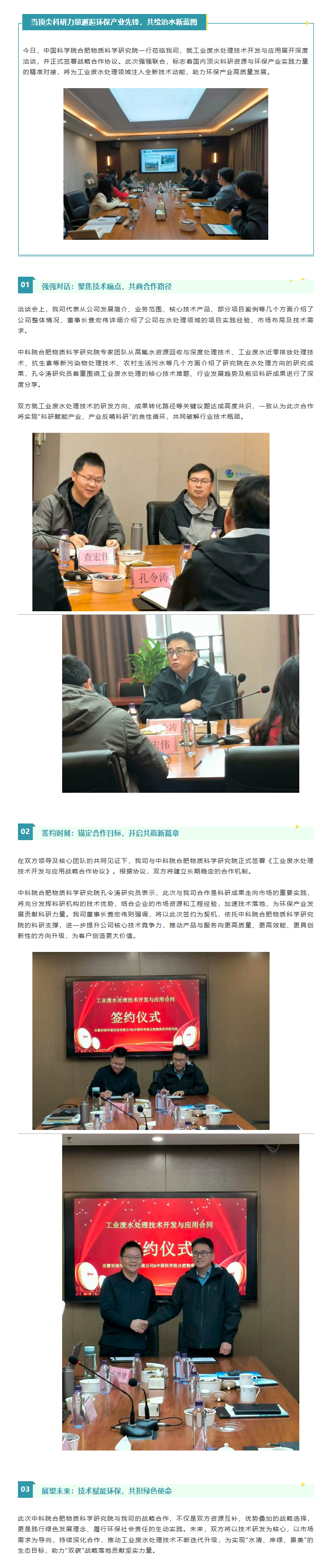 簽約共贏!世綠環保與中科院合肥物質科學研究院共研工業廢水處理